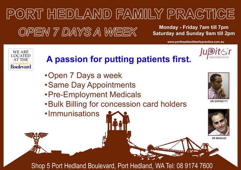 Port Hedland Family Practice is a mixed billing practice. We may bulk bill health care card holders , pension card holders and any body who is bellow the age of 16. All other fees we charge are very affordable and much lower than the fees charged anywhere else.